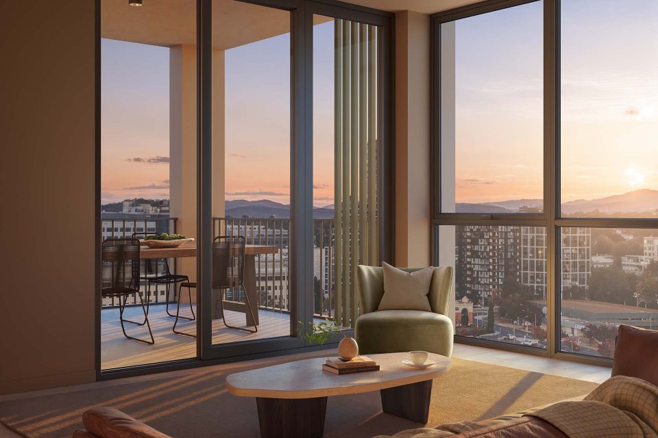 Besides the green views of the development’s extensive landscaped gardens, other apartments will have views of the Woden town centre.