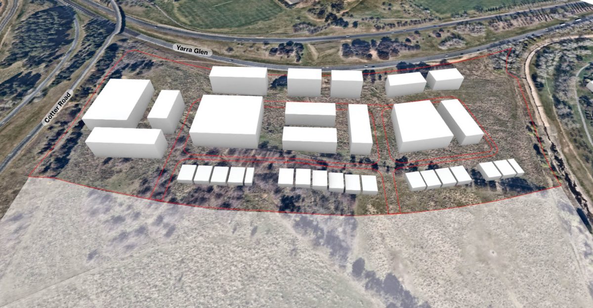 Possible massing of residential buildings in North Curtin for 1300 dwellings. Images: ACT Government.