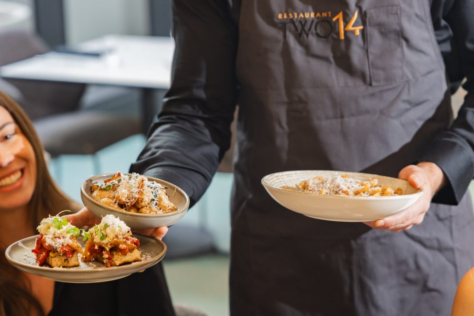 Restaurant Two14, the hotel’s onsite dining option, caters for breakfast, lunch and dinner, with a focus on traditional Italian flavours.