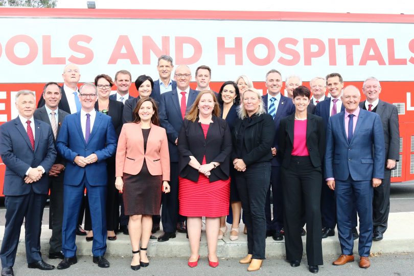 Luke Foley (red tie in the centre) brought his shadow cabinet to the Queanbeyan Roos Club in March this year. New leader Michael Daley is second from the left (purple tie), also pictured is Monaro candidate (no tie over Mr Foley’s shoulder) Bryce Wilson. Photo: lukefoley.com.au.