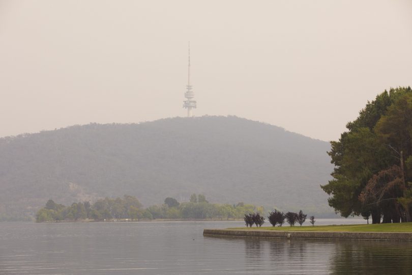 Telstra tower can barely be seen across Canberra as air quality worsens across the Territory.