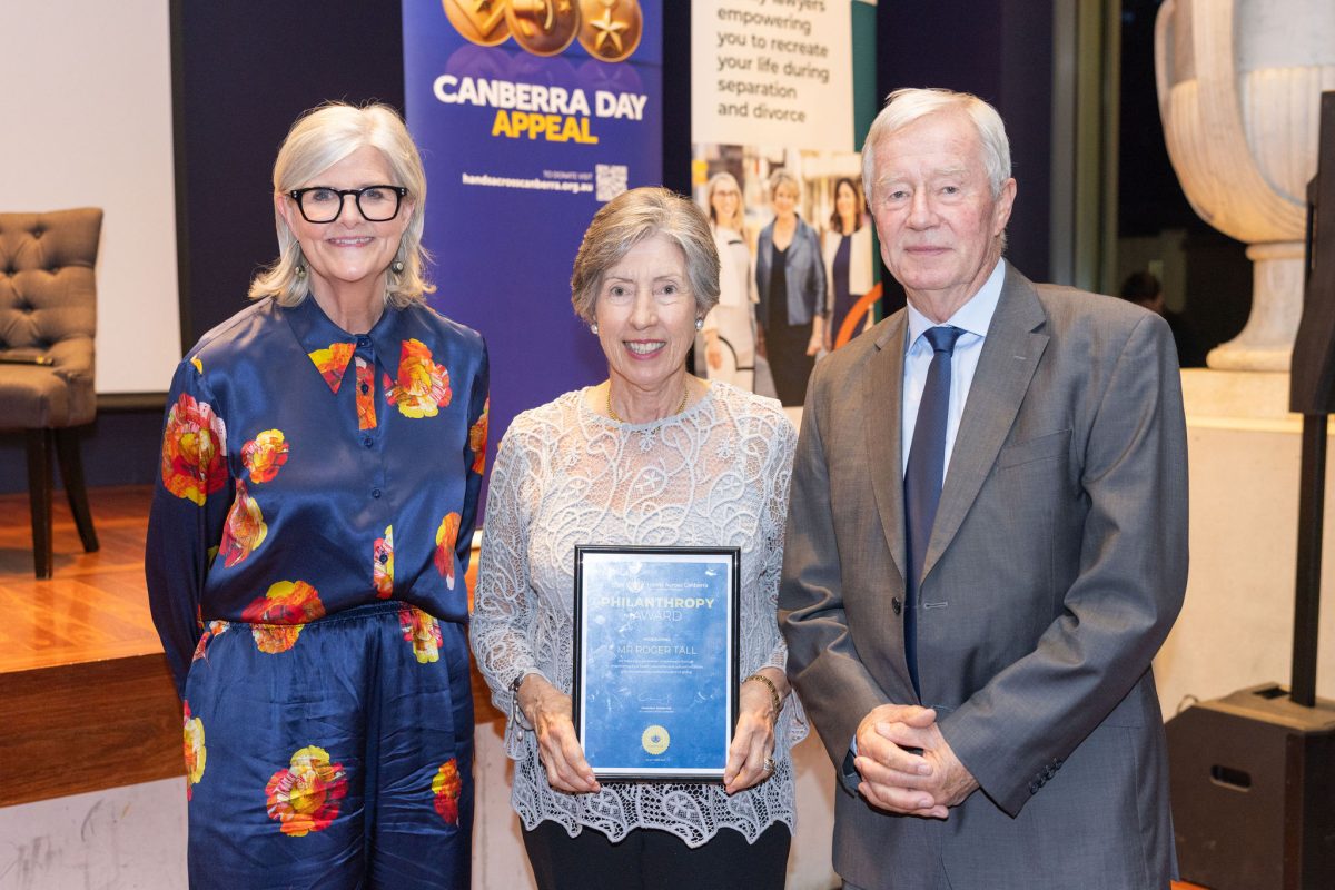 Hands Across Canberra board chair Greg Boorer cited decades of support for the Canberra community totalling millions of dollars when announcing the award, which was presented to Mr Tall by Governor-General Sam Mostyn.