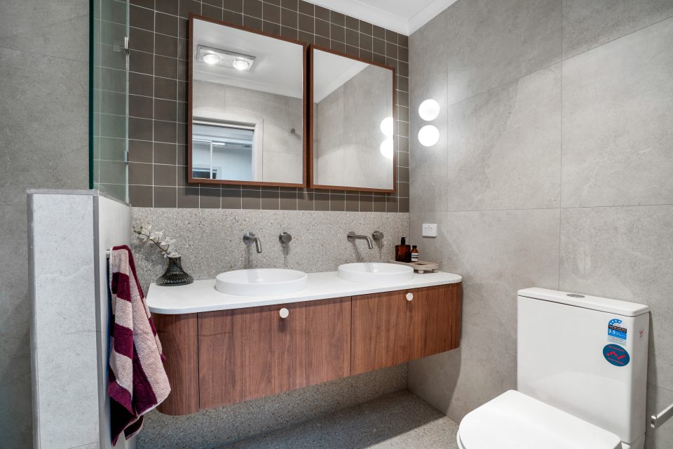 An outdated main bedroom ensuite has been reworked into a powder room and the wardrobe has been changed to a stylish, spacious ensuite.