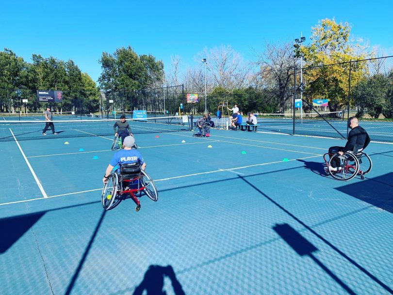 Wheelchair tennis at the North Woden Tennis Club. Photo: Woden Tennis Club.