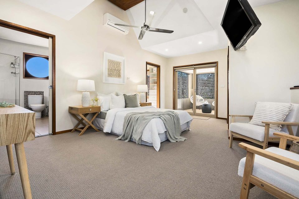 “The main suite is private and segregated, with high ceilings, two walk-in wardrobes, a private verandah and a spacious ensuite with a hydrotherapy spa,” Sally says.