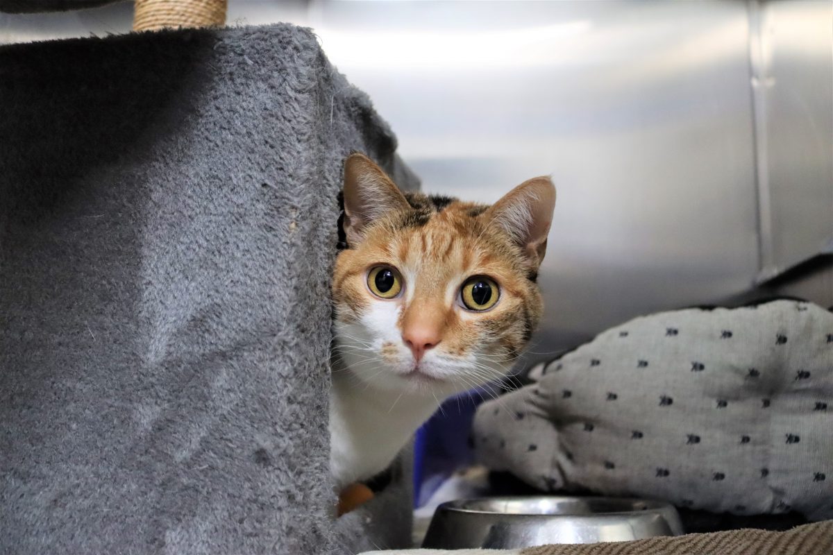 Salmon is quiet and shy when you first meet her. Even though she is likely to stay close to her favourite spot in her cat tree, she would welcome a slow greeting. Salmon would love to live in a quiet home with someone willing to give her the time she needs to settle.
