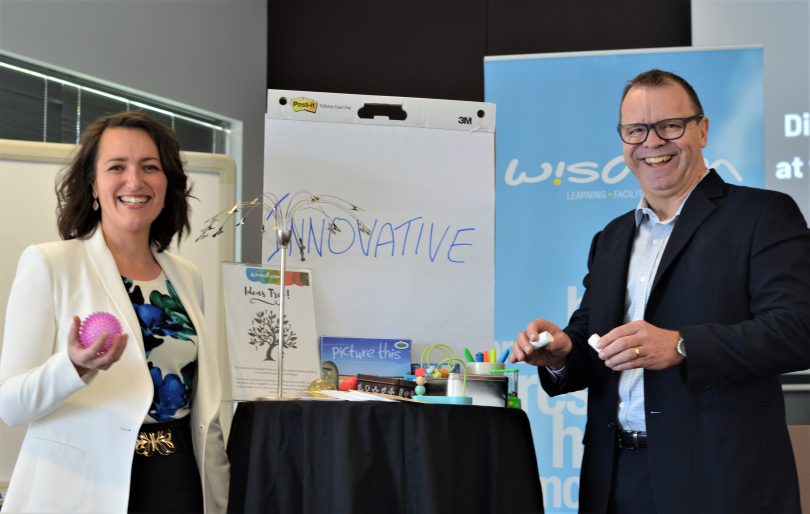 Chalk and blackboards are out and innovative learning aids are in at Wisdom Learning, a finalist in the Australian Training Awards. Wisdom’s co-owners Jana Clyde and Rod Hattch were also named 2019 ACT Small Training Provider of the Year for the second year in a row. Photos: Supplied.