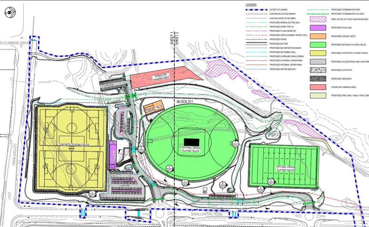 But a submission from Wright resident Judy Scott reiterates concerns about the project cost, the loss of bushland on the 14.5 ha site, the environmental impact of synthetic grass, traffic congestion and adverse noise.