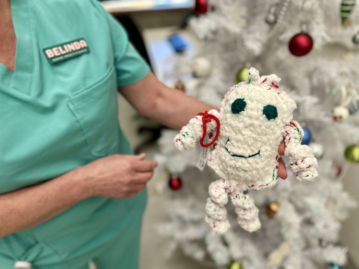 Staff at the Dickson Walk-in-Centre are giving out knitted donations from local group Good Omen Goodeze. Photo: James Coleman.