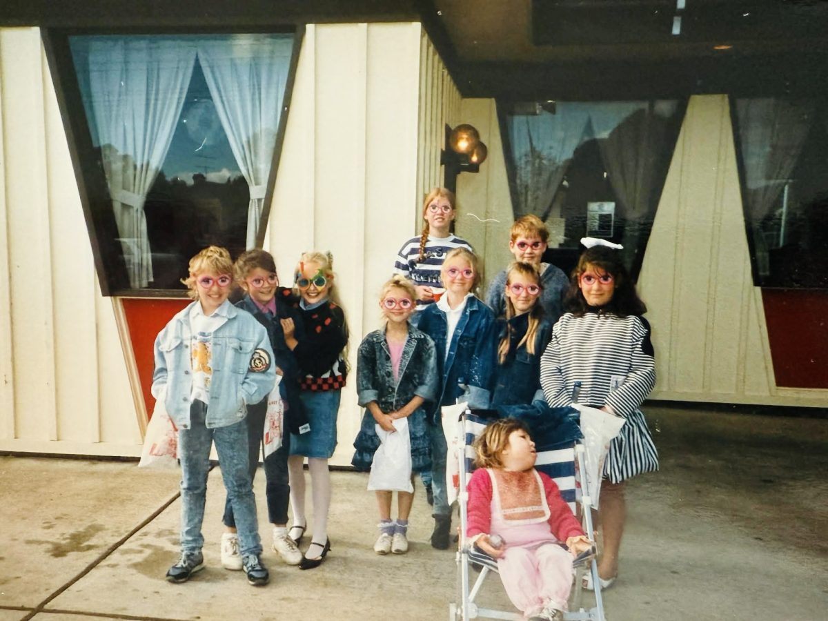 My best friend’s birthday party at Pizza Hut Queanbeyan in 1987. Denim-themed, of course. I’m sixth from the left. Photo: Supplied.