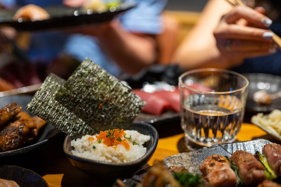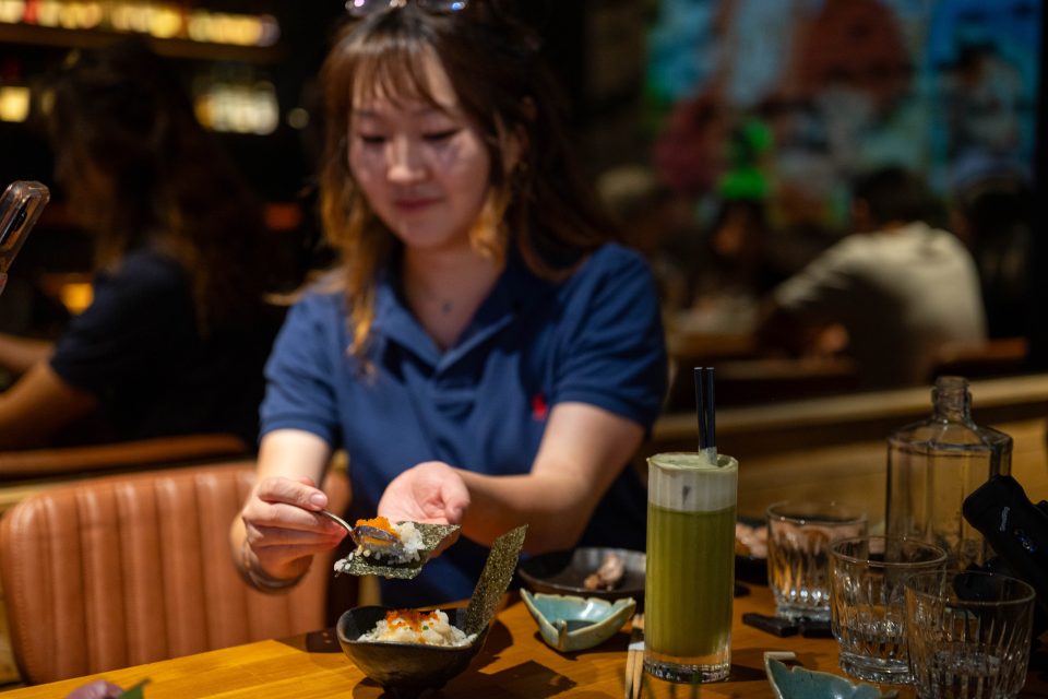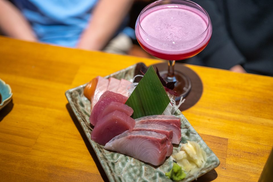 The sashimi is effortlessly melt-in-the-mouth. The slices of Tasmanian salmon, bluefin tuna, and Hiromasa kingfish are unapologetically chunky, but the texture and sweetness delight our taste buds.