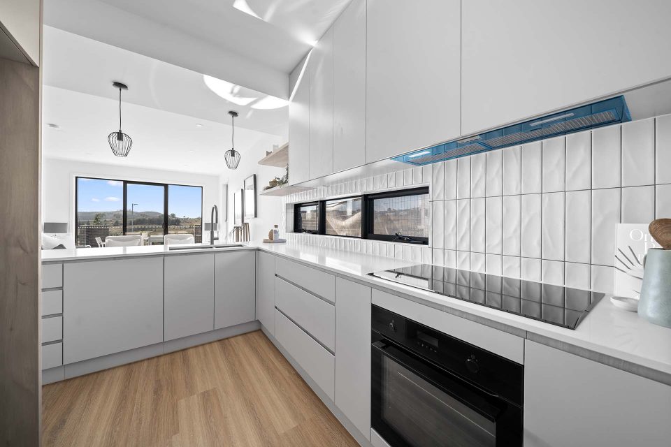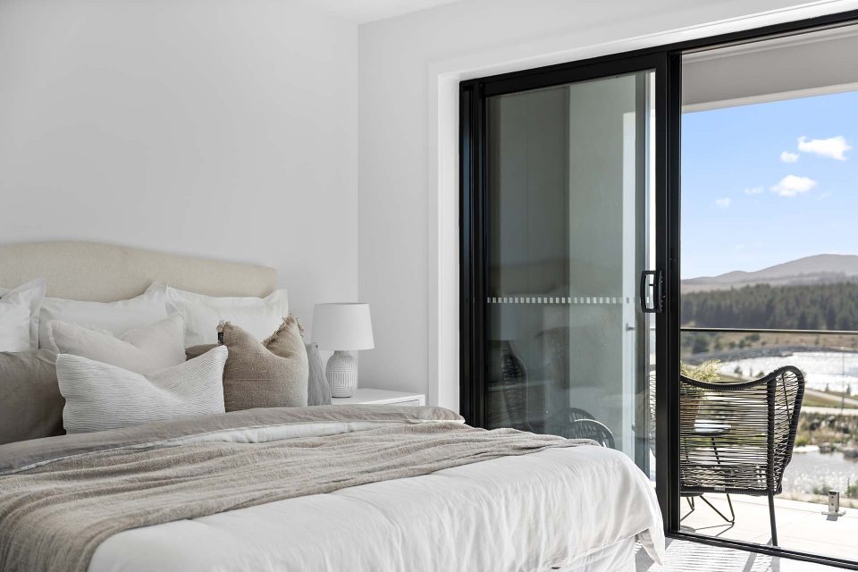 Features such as extra-high 2.7-metre ceilings, large glass sliding doors, oversized glass windows, and a light colour scheme take advantage of an easterly aspect and stunning views.