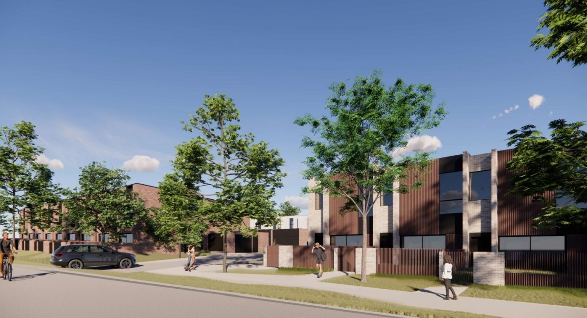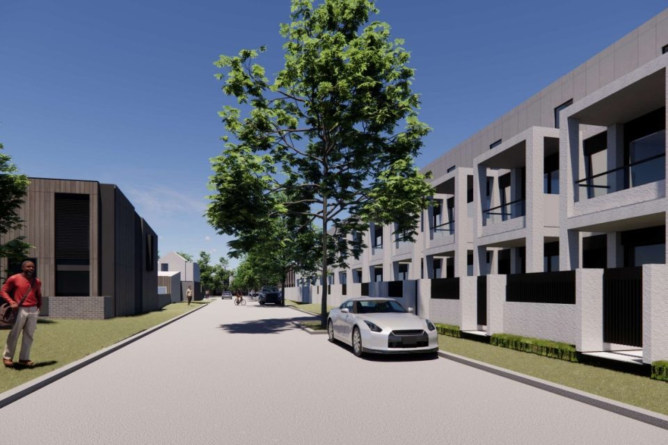 An artist’s impression of townhouses facing Unwin Street. Images: Turco.