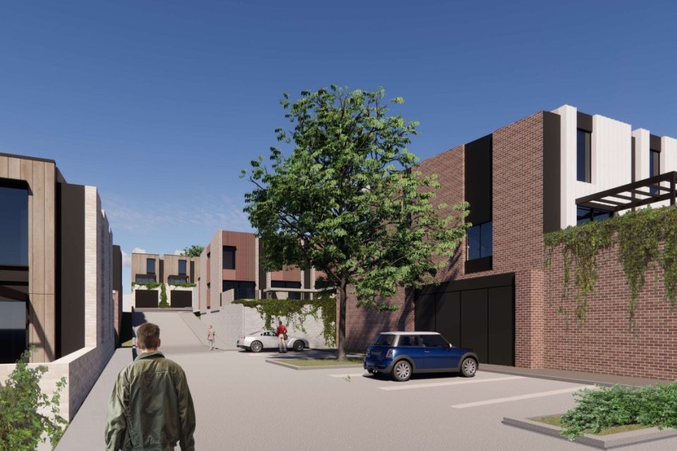 The plans approved in 2023, designed by Stewart Architecture, were for a mix of townhouses and apartments on the site, bounded by Unwin Street, Streeton Drive and Heysen Street.