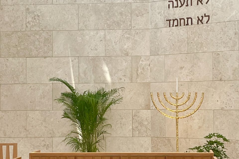 Between the three houses of faith, there’s a museum and a forum for discussion and debate. Each space is well used: an Italian priest with a PhD in inter-religious dialogue says Mass each day in St Francis Church. While we visited, an Orthodox Jewish man with a kippah and a tallit came in to pray in the synagogue.