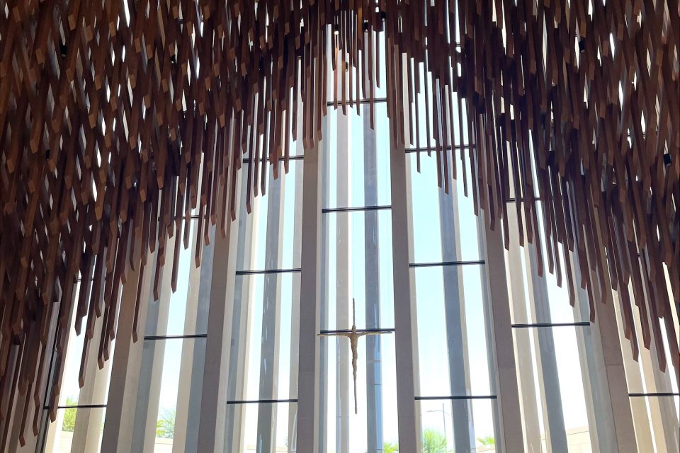 It’s a remarkable and very beautiful building housing a mosque, a Catholic church and a synagogue. Each has a distinctive modern design by distinguished British architect Sir David Adjaye. Clean lines predominate, and the spaces are meditative and calm.