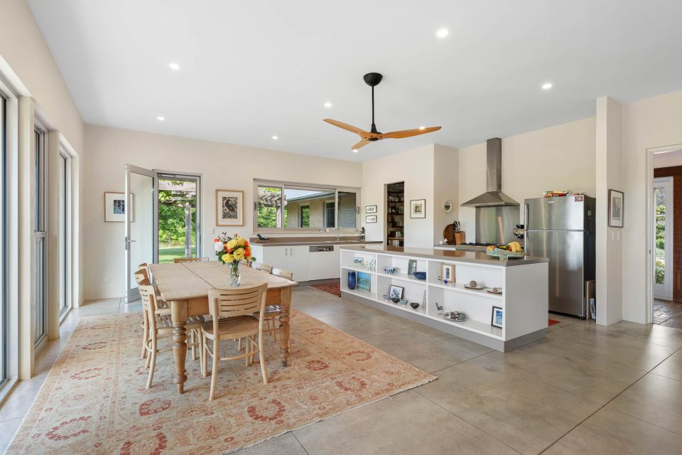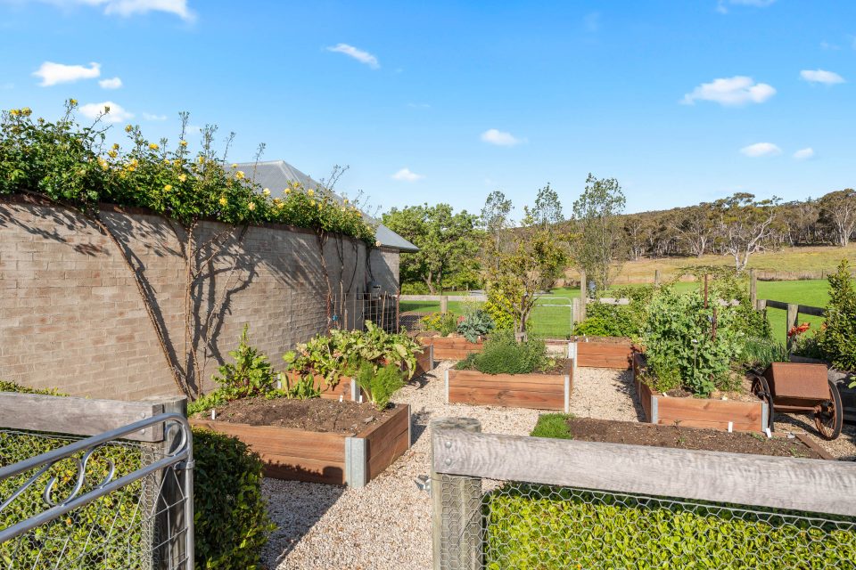 Hobby farmers and home cooks are well catered for by a fully fenced kitchen garden, chicken coop, 104,000-litre rainwater tank, a bore and automatic lawn irrigation.