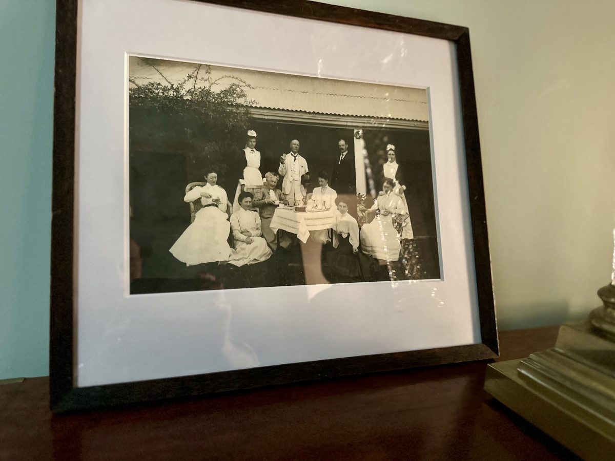A 1910 family photograph shows what happened after lunch: relatives and domestic servants, dressed in their best, enjoying tea and cake on the verandah – “looking a little bit bloated, a little bit sleepy,” Dr Wong laughs.