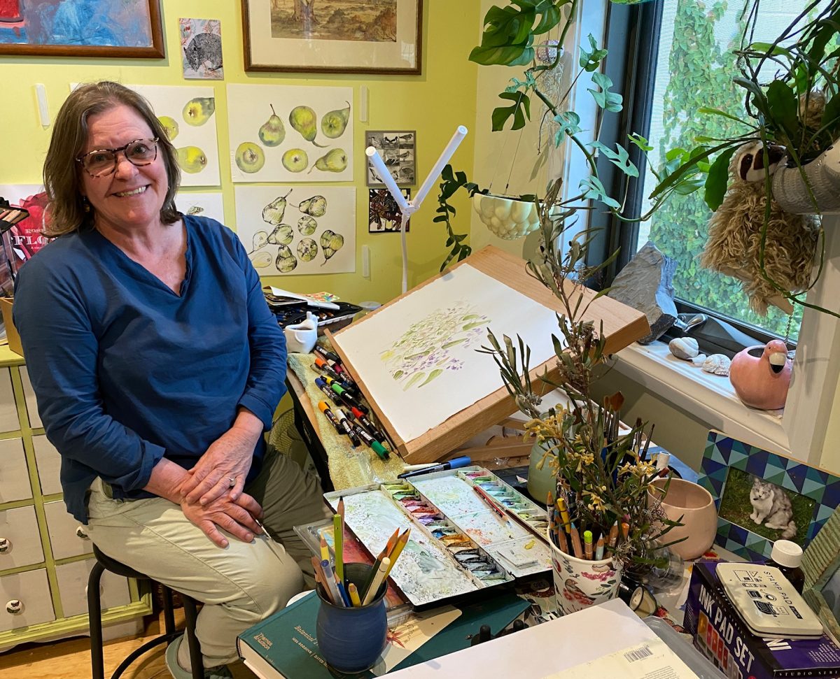 Canberra nature lover, writer and artist Dr Fiona Boxall in her studio. She has combined her passions to create her first book – A Canberra Nature Journal. Photo: Michelle Rowe.
