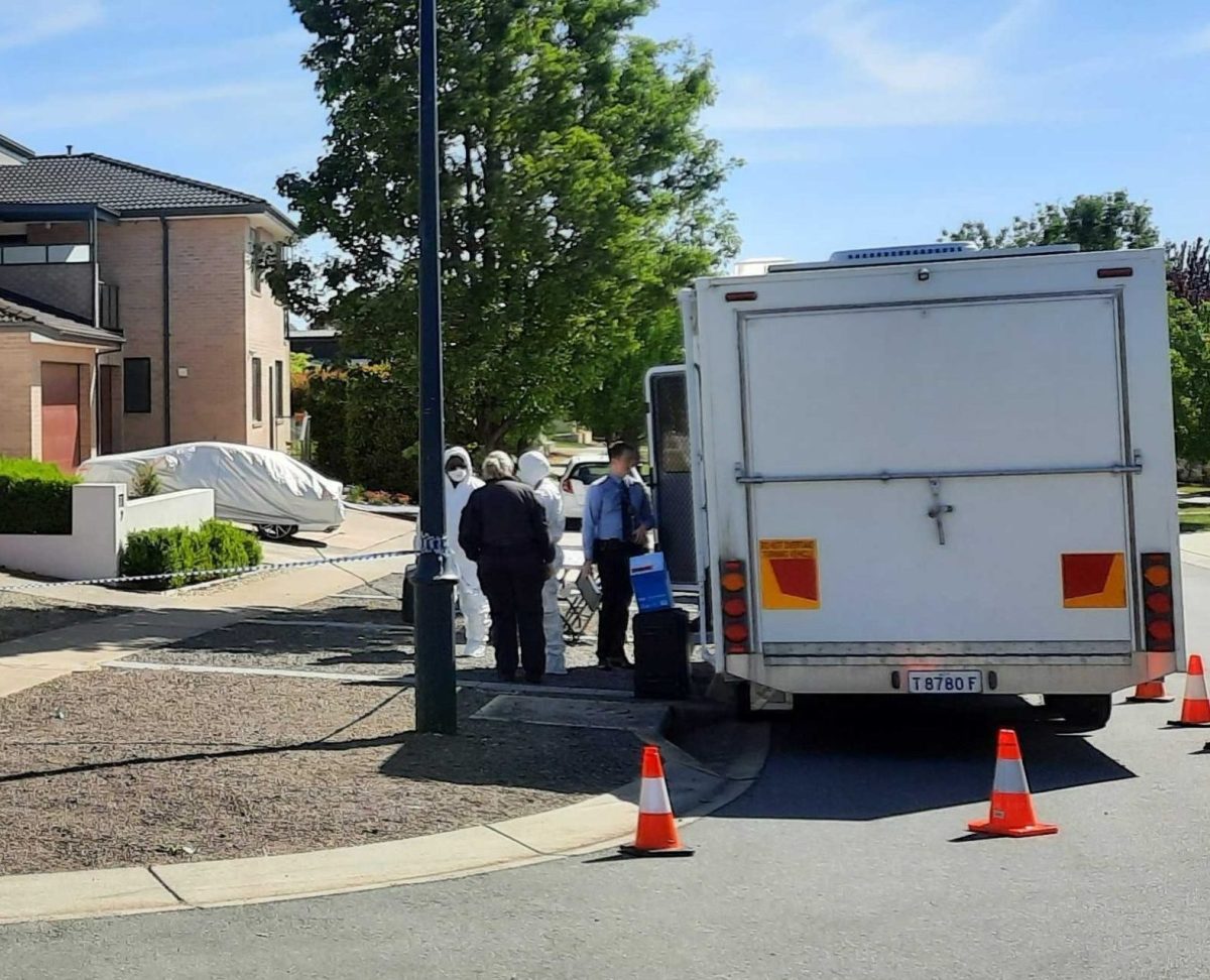 Police officers examine the scene at Kinloch Crescent in Bruce in October 2023. Photo: Ian Bushnell.