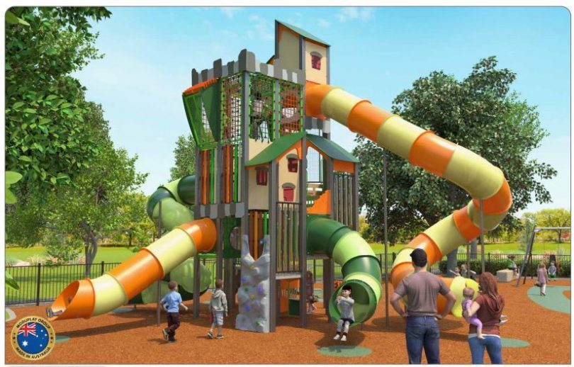 The sky tower has been earmarked as the playground’s standout piece of equipment. It boasts tube slides, climbing nets and interactive play panels.